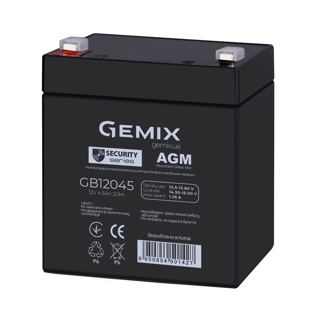 Герметичні VRLA свинцево-кислотні акумулятори GEMIX серії GB спеціально розроблені для експлуатації в слабко струмових системах. Виготовляються за технологією AGM (електроліт, абсорбований в скловолоконному сепараторі). Акумулятори GEMIX серії GB володіють чудовим співвідношенням ціни і якості, що обумовлює використання серії в охоронно-пожежних та інших системах безпеки. Відповідаючи міжнародним стандартам безпеки, рекомендовані для застосування в системах контролю і управління доступом.