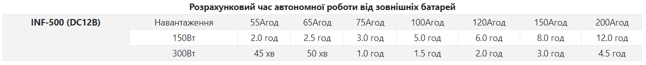 Розрахунковий час автономної роботи від зовнішніх батарей
