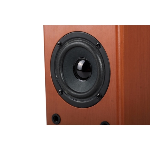 • Дерев'яний корпус колонок забезпечує чистий і насичений звук на низьких частотах
