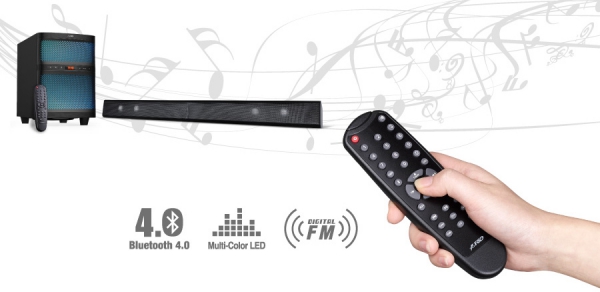 USB reader, Підтримка форматів WMA / MP3, FM-tuner, з пам'яттю до 100 станцій, Кольорове світлодіодне підсвічування сабвуфера