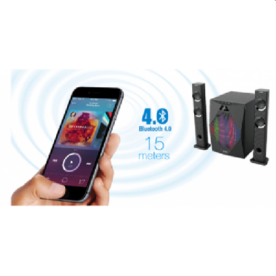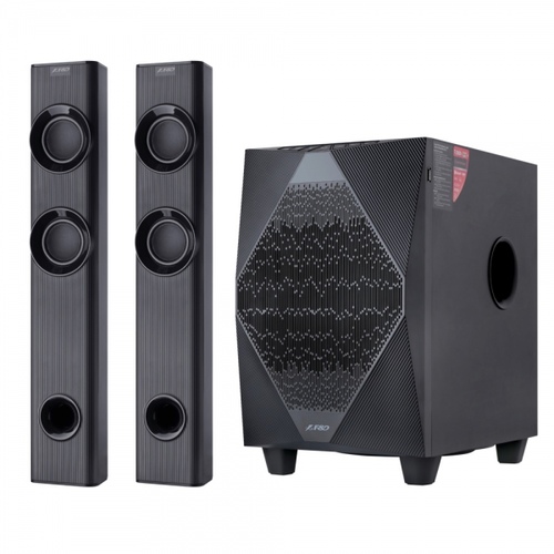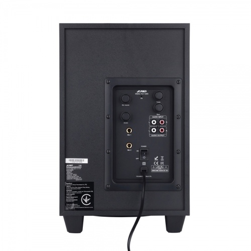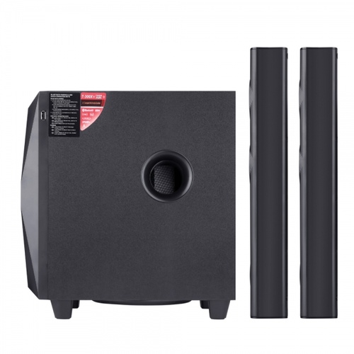 Акустична система 2.1 F&D T-300X. Витончені колонки можуть працювати окремо або складаються в єдиний саундбар, який легко розмістити під плазмовим ТВ. Потужний сабвуфер з МДФ, забезпечує глибокий бас. Загальна потужність акустики 70 Вт. На передній панелі сабвуфера розташований дисплей. Фішка акустики в динамічної підсвічуванні - наповни фарбами свій світ. Підключайся зі смартфона через Bluetooth, і слухай музику з кращим звучанням.