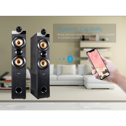Стильна акустична система F&D T-70X - отримай новий досвід від перегляду фільмів і прослуховування музики. Відчуй чисте і глибоке звучання. Класичний стильний дизайн відмінно впишеться в інтер'єр. Колонки виконані з дерева. Триполосна акустика, загальна потужність акустики 160 Вт. Для зручності користувача, колонки можна підключити будь-яким зручним способом: HDMI (ARC), оптичний, AUX. А так же бездротове підключення зі смартфона або планшета по Bluetooth. Проведи весело час з друзями, з функцією вбудованого караоке, підключай мікрофон і співай.