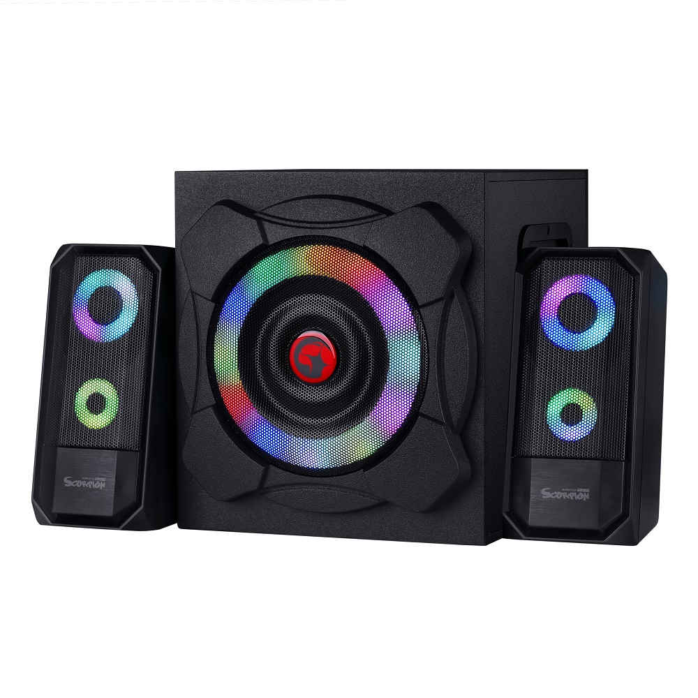 Геймерська мультимедійна Bluetooth акустика вражає своїм звучанням. Створена для перегляду фільмів, комп'ютерних ігор або домашніх вечірок. Сучасне LED підсвічування сабвуфера та сателітів створить неповторну атмосферу.