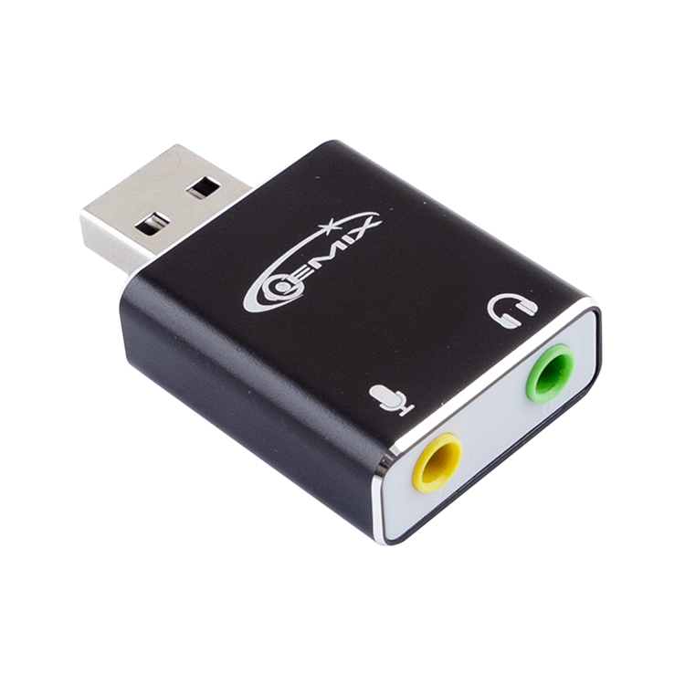 Зовнішня звукова USB карта виконана в алюмінієвому корпусі. Адаптер має один вхід для мікрофона і один стерео вихід для навушників / колонок 7.1 Підключається через USB порт, підходить до всіх сучасних комп'ютерів або ноутбуків. Plug & Play працює без драйверів.